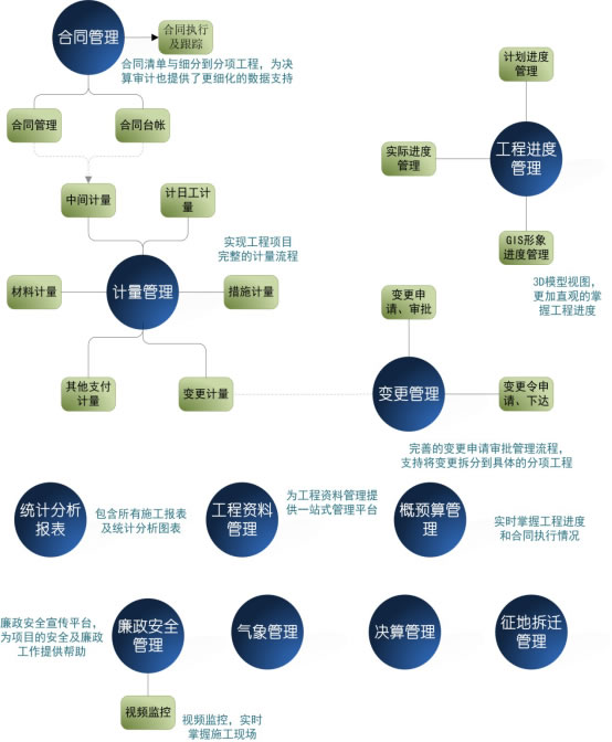 海特高等級公路多項目建設(shè)項目管理大數(shù)據(jù)云平臺是海特科技在交通工程建設(shè)信息化領(lǐng)域建設(shè)多年的開發(fā)成果,它沉淀了海特作為交通工程建設(shè)信息化供應(yīng)商多年來所積累的豐富經(jīng)驗,該平臺主要為項目業(yè)主及各層參與單位投資、建設(shè)、運營、養(yǎng)護多個工程項目的復雜管理過程而定制,旨在建立一個現(xiàn)代化、務(wù)實、高效的信息化管理平臺,確保高質(zhì)量、低成本的完成項目業(yè)主及各層參與單位的管理工作。該平臺包括項投資管理、質(zhì)量管理、安全管理、文檔管理、進度管理、辦公自動化六大功能模塊,并提供了基于BIM的綜合分析決策支持應(yīng)用模塊,能完成項目業(yè)主及各層參與單位對一個或多個公路工程項目項目建設(shè)全過程的管理,尤其對項目整個過程費用、質(zhì)量、進度等數(shù)據(jù)統(tǒng)計和分析。從而達到項目業(yè)主及各層參與單位對各項目投資、建設(shè)、運營的有效管理和控制的目標。